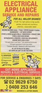 Electrical appliances: The following equipment used or intended for use in the home: Air conditioners, dishwashers, dryers, freezers, furnaces, garbage, disposals, ranges, refrigerators, vacuum cleaners and washing machines. ... Retrieve Content